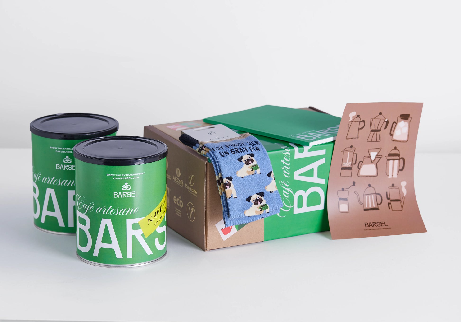 two freshly roasted coffees, an exclusive print, soft socks, and a notebook to capture ideas while waiting for that first sip.